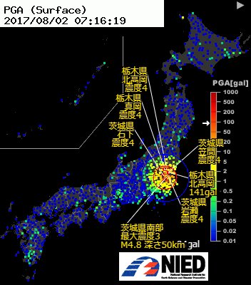 最大震度4以上の地震があったみたい07:16:05 震度4 茨城 埼玉 東京 震度3 群馬 栃木 神奈川 千葉 #強震モニタ (強震モニタExtension)を利用した速報です https://t.co/hDradmqdNF