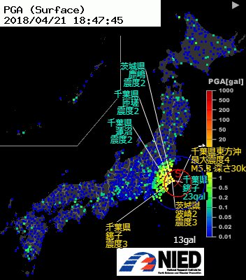 最大震度4以上の地震があったみたい18:47:20 震度3 千葉 千葉県東方沖M5.1 dep=30km