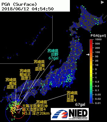 最大震度4以上の地震があったみたい04:54:31 震度4 鹿児島 震度3 宮崎 震度2 熊本  大隅半島東方沖M5.5 dep=30km