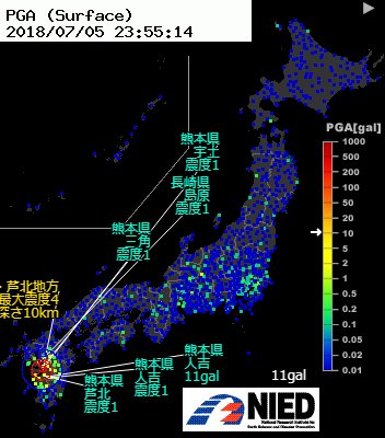 熊本県熊本地方M3.9 dep=10km(最大震度4以上の地震があったみたい23:55:08 震度1 長崎 熊本 宮崎 鹿児島)