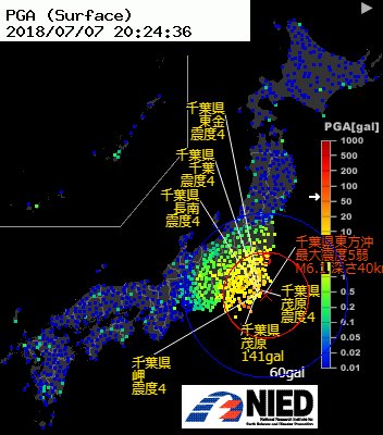 千葉県東方沖M6.0 dep=50km (最大震度4以上の地震があったみたい20:24:00 震度4 千葉 震度3 茨城 埼玉 東京 神奈川 相模湾 震度2 静岡)