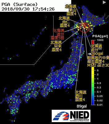 胆振地方中東部M5.0 dep=40km (最大震度4以上の地震があったみたい17:54:13 震度4 胆振 震度3 上川 十勝 日高 震度2 空知 石狩)