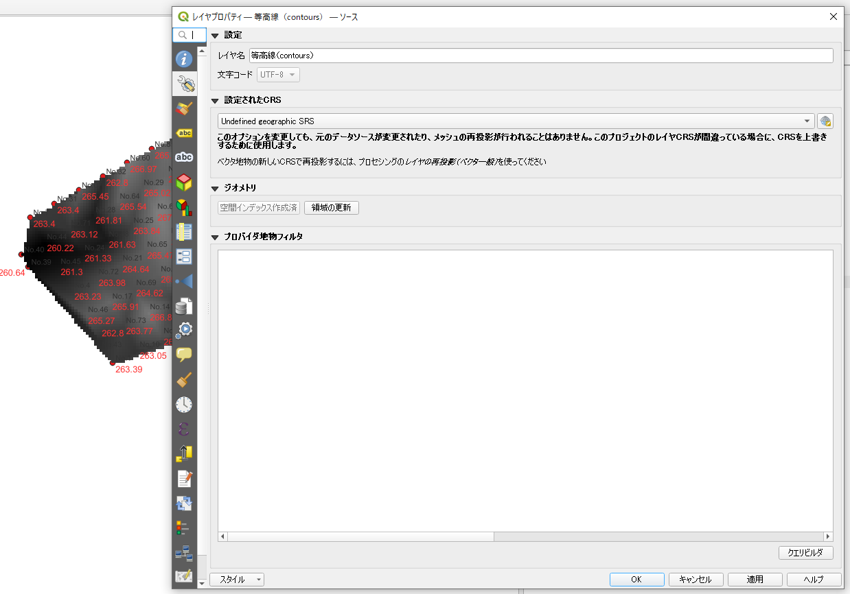 等高線の座標がズレた場合には、座標系を指定してやる。