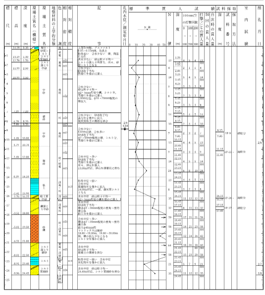 この表層14mくらいまでのN値10前後の砂質土層は、熱田層と言われるもので、N値をみると軟弱に見えるが、孔壁の自立性が高いです。