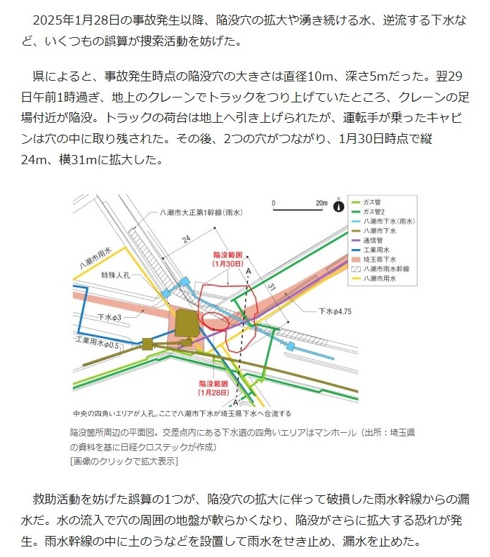 安否不明のまま陥没穴の救助活動終了、埼玉・八潮事故発生2週間の誤算 | 日経クロステック(xTECH)