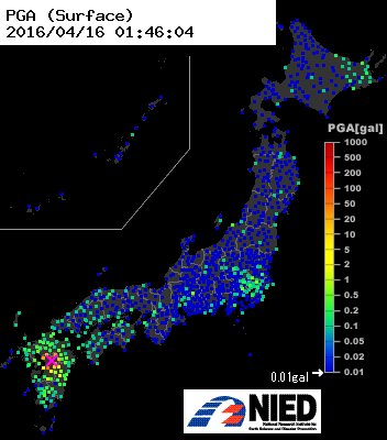 最大震度4以上の地震があったみたい01:46:06 震度6弱 熊本 震度3 福岡 震度2 佐賀 長崎 #強震モニタ https://t.co/DXgLQ8bc7k