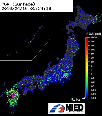 最大震度4以上の地震があったみたい05:34:20 震度3 熊本 震度1 宮崎 #強震モニタ https://t.co/W7x3uI6xpC