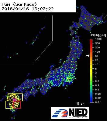 最大震度4以上の地震があったみたい16:02:11 震度4 熊本 震度2 長崎 宮崎 震度1 大分 #強震モニタ https://t.co/qAi60vAgWf