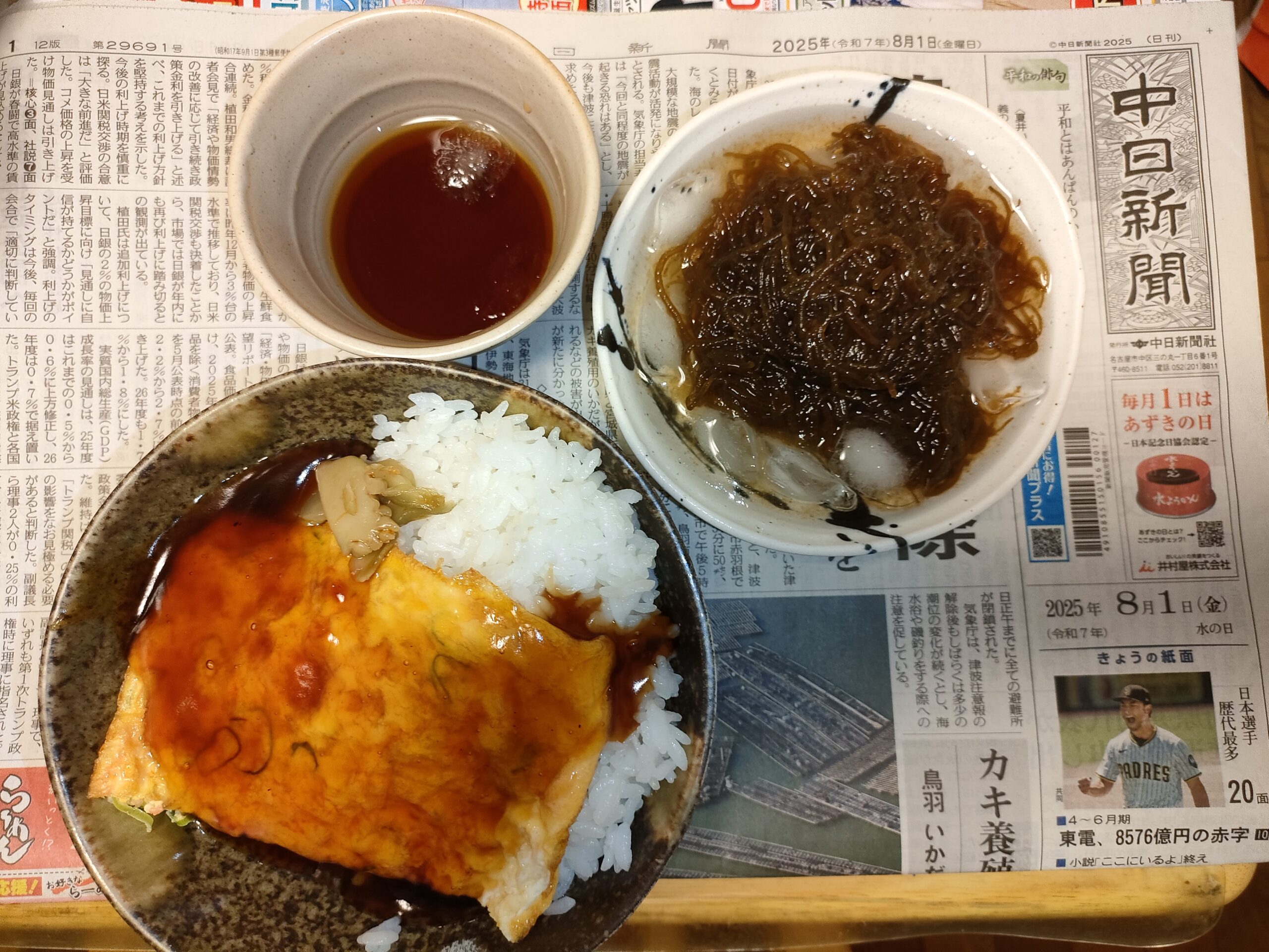 毎日暑いです。今日も弁当の残り物なんだけど。