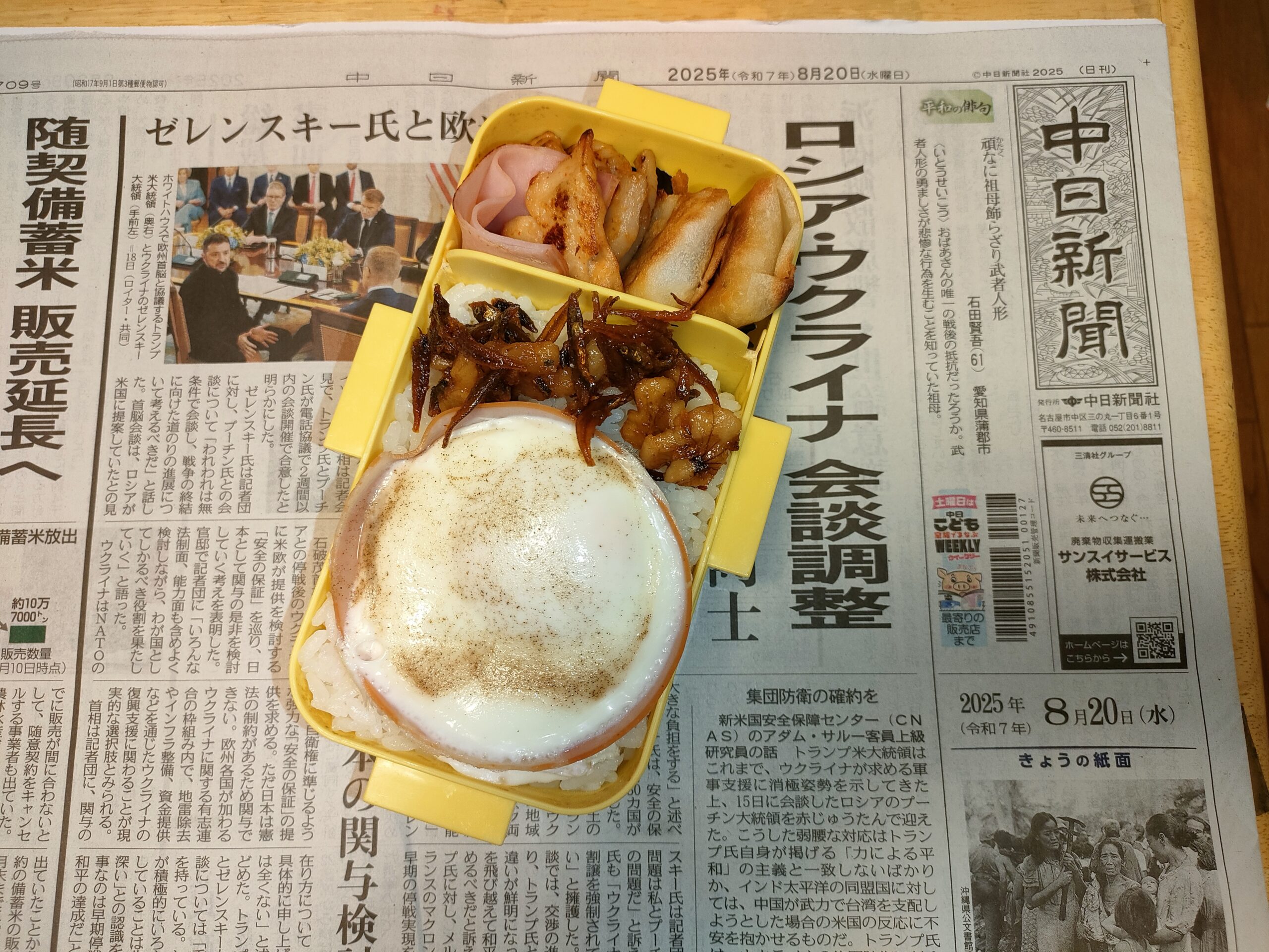 なんか冷蔵庫にあるボクの買った残り物詰めただけ。