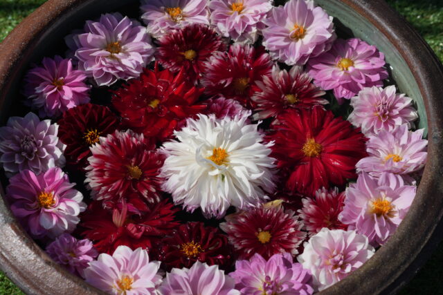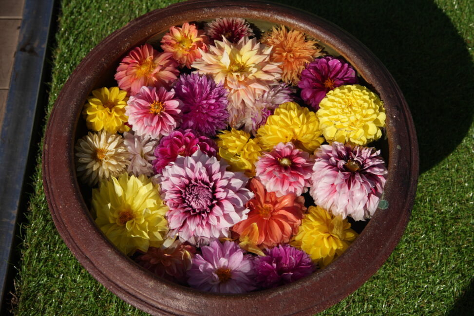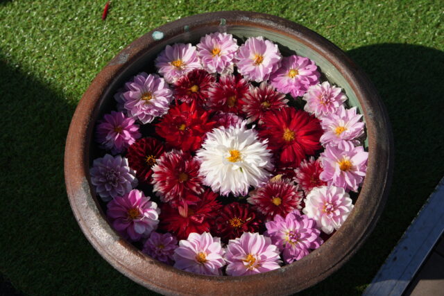 ダリアのようなカラフルな花のフローティングフラワーは素晴らしいな。